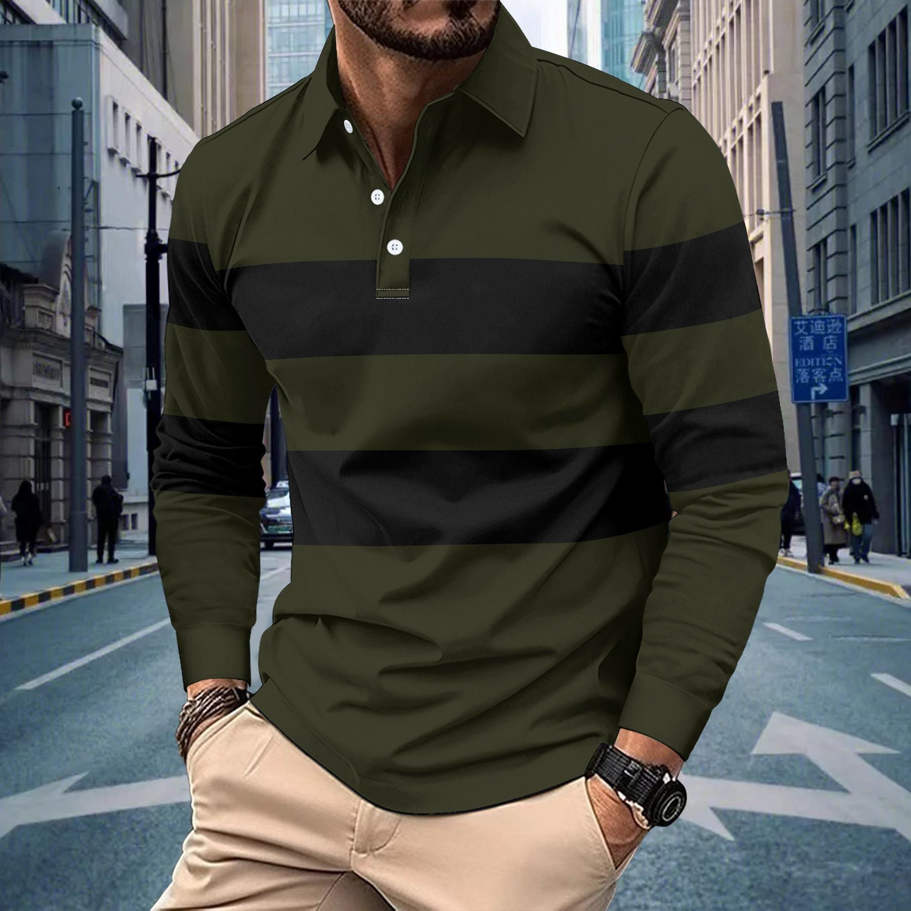 Long Sleeve Polo Shirt Spring Autumn Men's Casual Stripe Turn-Down Collar High Quality Men's T-Shirt Top