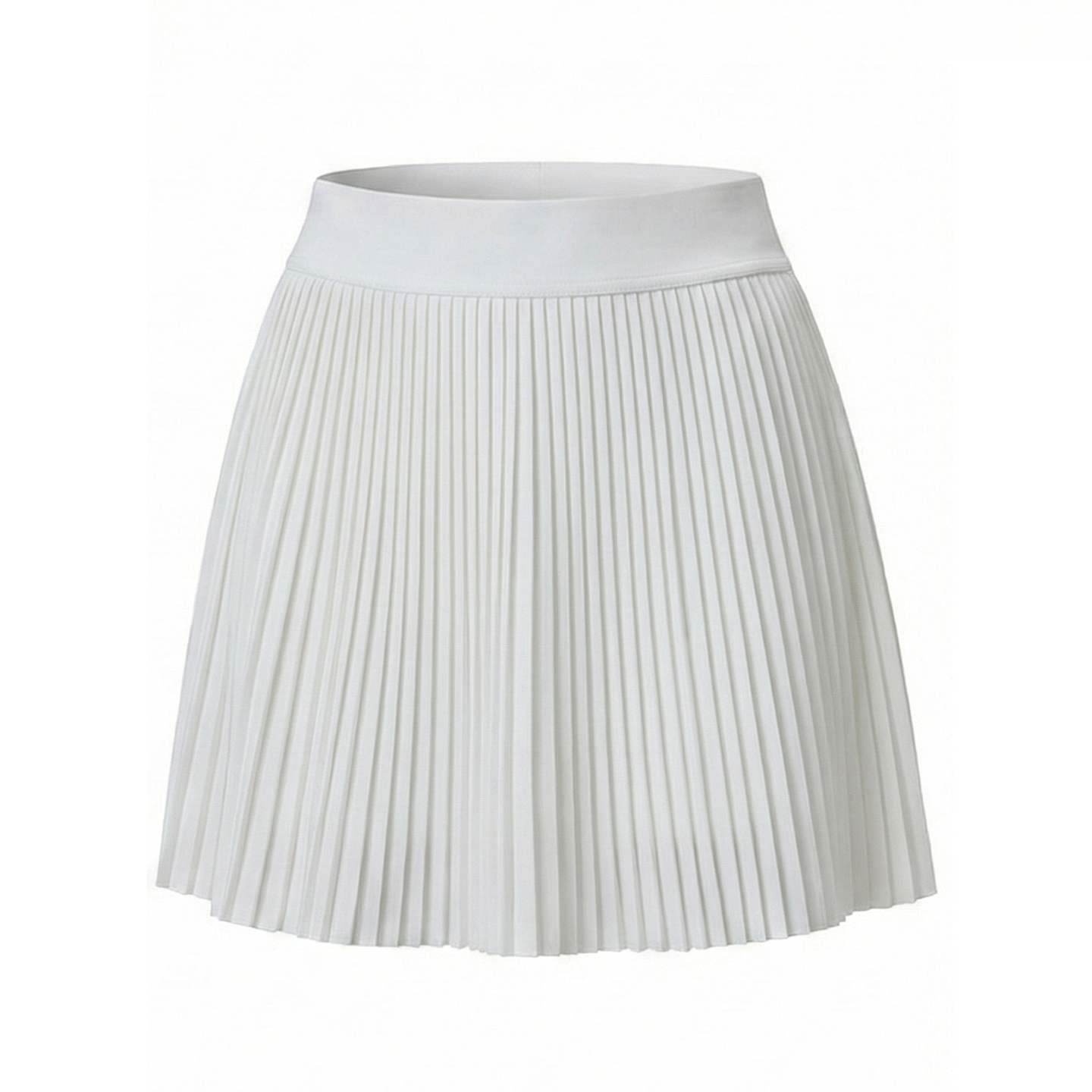 High-waisted pleated skirt with built-in shorts. Side pockets on inner shorts for convenient ball storage. Wide waistband flatters waistline and stays put during movement. Lightweight pleats create elegant movement on court.