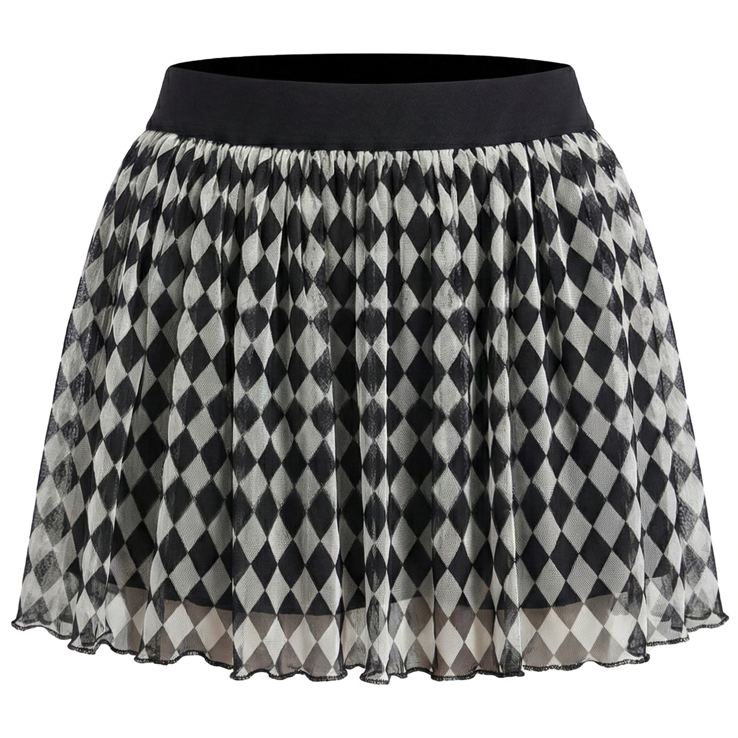A-line silhouette with diamond-check mesh overlay and ruffled petal hem for fluid motion. Wide yoga-inspired waistband delivers secure, no-dig tummy control. Built-in compression shorts feature a dual-sided four-pocket system accommodating both phone and padel balls. Anti-exposure construction ensures confident coverage during aggressive net attacks.