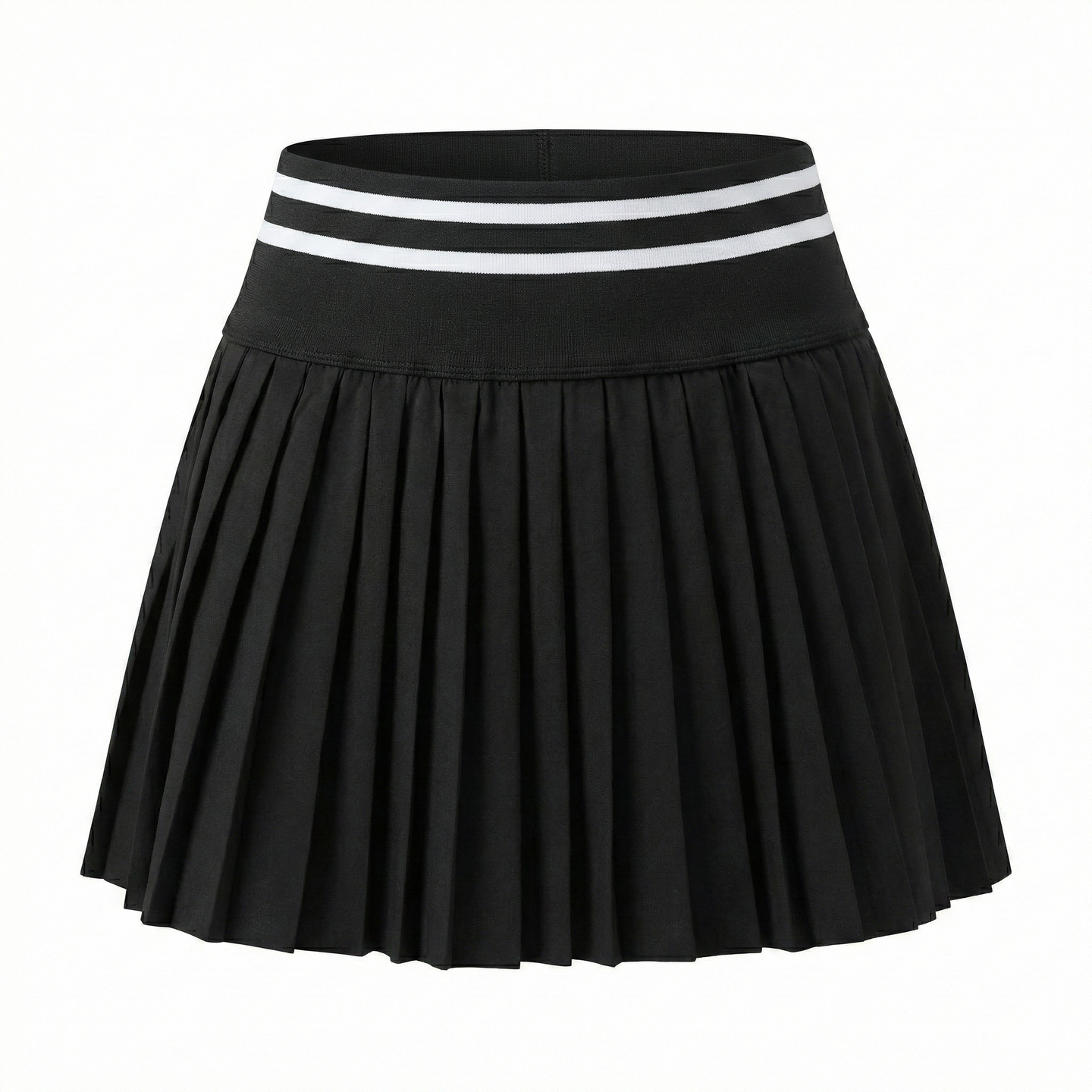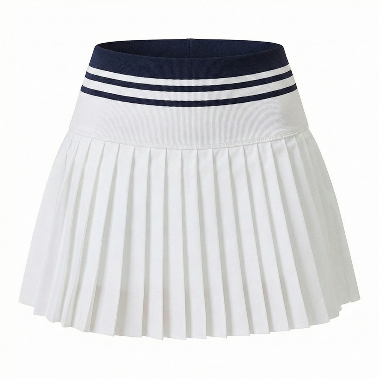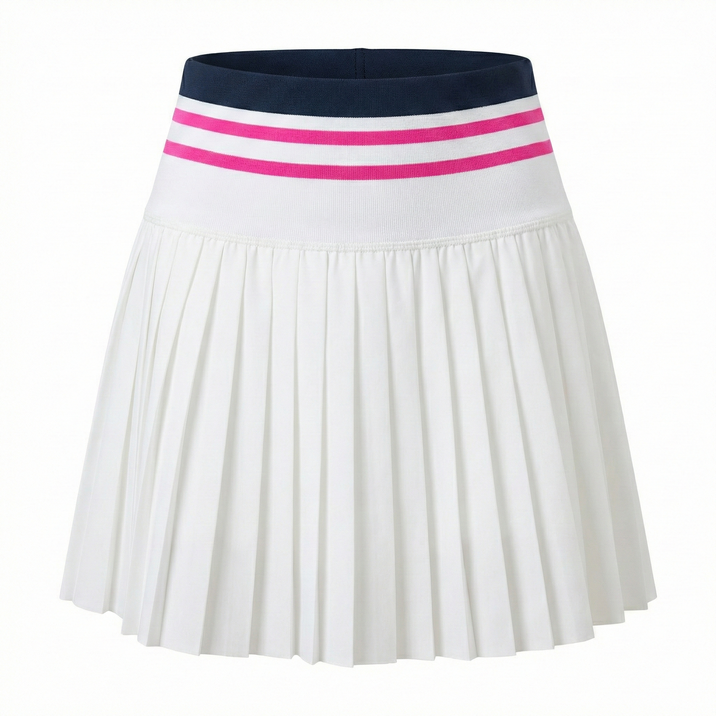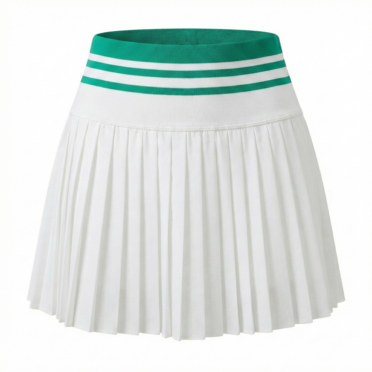 Lightweight pleated silhouette with wide contrast-striped waistband. Built-in compression shorts feature side ball pocket for quick serve access. Anti-exposure design ensures confident coverage during aggressive net play.